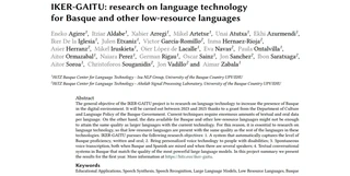 IKER-GAITU: research on language technology for Basque and other low-resource languages