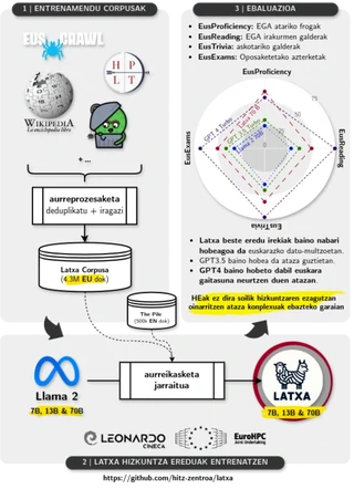 Artikulu honetan Latxa hizkuntza-ereduak (HE) aurkeztuko ditugu, egun euskararako garatu diren HE handienak. Latxa HEek 7.000 miloi parametrotik 70.000 milioira bitartean dituzte, eta ingeleseko LLama 2 ereduetatik eratorriak dira. Horretarako, LLama 2 gainean aurreikasketa jarraitua izeneko prozesua gauzatu da, 4.3 milioi dokumentu eta 4.200 milioi token duen euskarazko corpusa erabiliz. Euskararentzat kalitate handiko ebaluazio multzoen urritasunari aurre egiteko, lau ebaluazio multzo berri bildu ditugu: EusProficiency, EGA azterketaren atariko frogako 5.169 galdera biltzen dituena; EusReading, irakurketaren ulermeneko 352 galdera biltzen dituena; EusTrivia, 5 arlotako ezagutza orokorreko 1.715 galdera biltzen dituena; eta EusExams, oposizioetako 16.774 galdera biltzen dituena. Datu-multzo berri hauek erabiliz, Latxa eta beste euskarazko HEak ebaluatu ditugu (elebakar zein eleanitzak), eta esperimentuek erakusten dute Latxak aurreko eredu ireki guztiak gainditzen dituela. Halaber, GPT-4 Turbo HE komertzialarekiko emaitza konpetitiboak lortzen ditu Latxak, hizkuntza-ezagutzan eta ulermenean, testu-irakurmenean zein ezagutza intentsiboa eskatzen duten atazetan atzeratuta egon arren. Bai Latxa ereduen familia, baita gure corpus eta ebaluazio-datu berriak ere lizentzia irekien pean daude publiko https://github. com/hitz-zentroa/latxa helbidean.